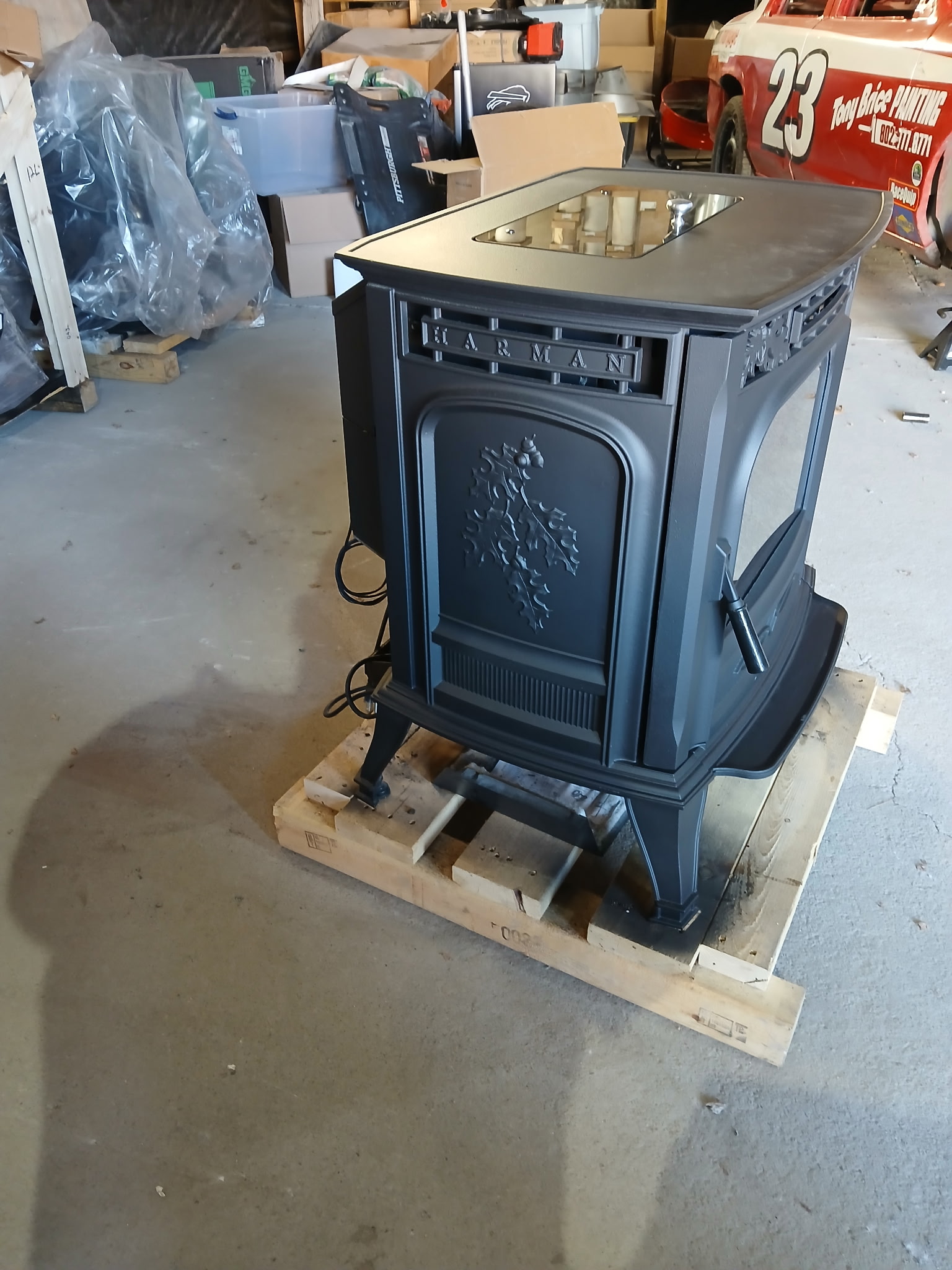 The Harman XXV pellet stove is a 50,000 Btu stove heating 1,700 plus Sq ft. This stove is Cast Iron, auto light, Thermostat controlled and has an ash pan. This stove comes with a 1 year Electrical parts warranty from date of purchase. The stove is ready for pick up and is located in the Ferrisburg location.